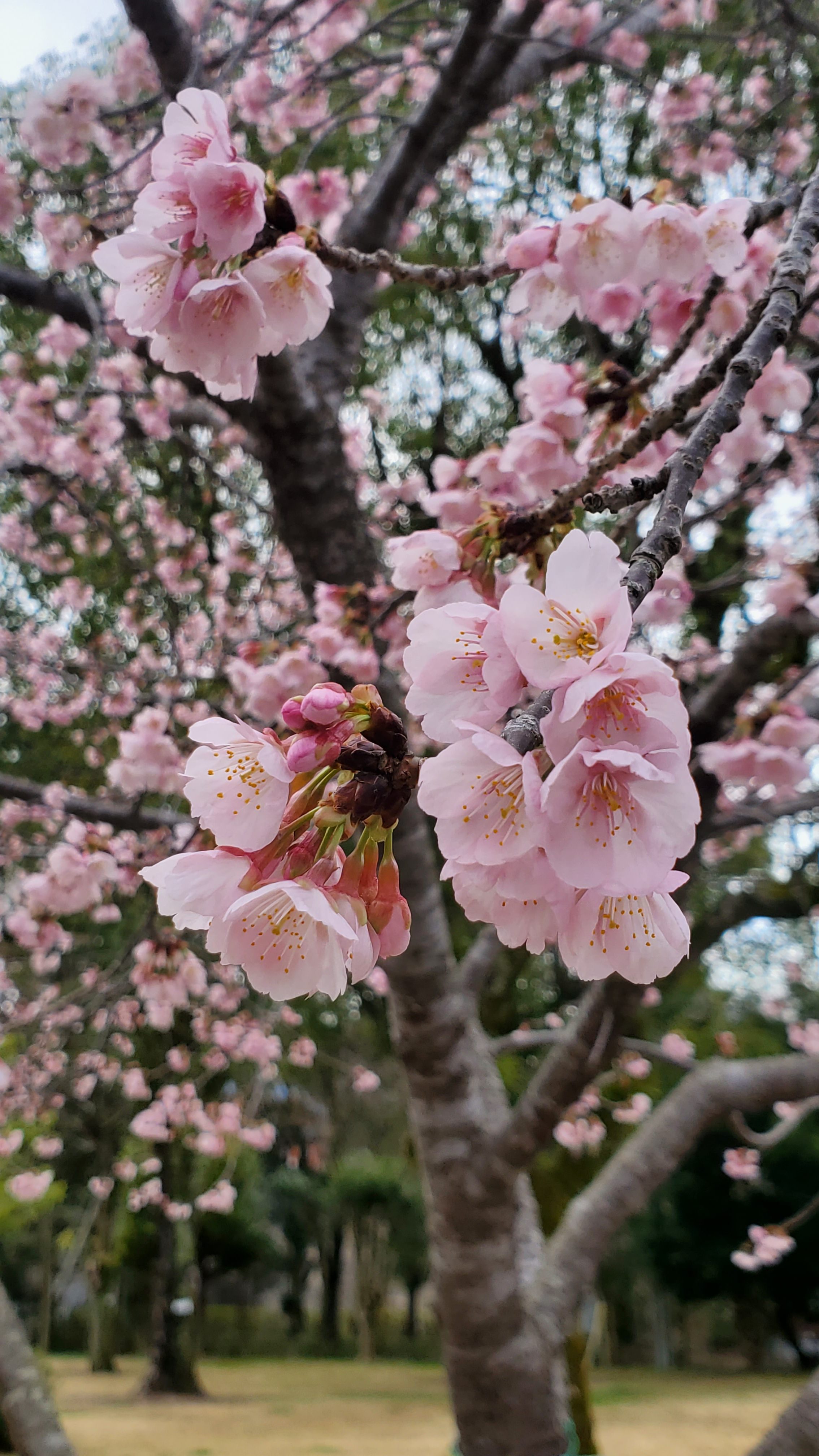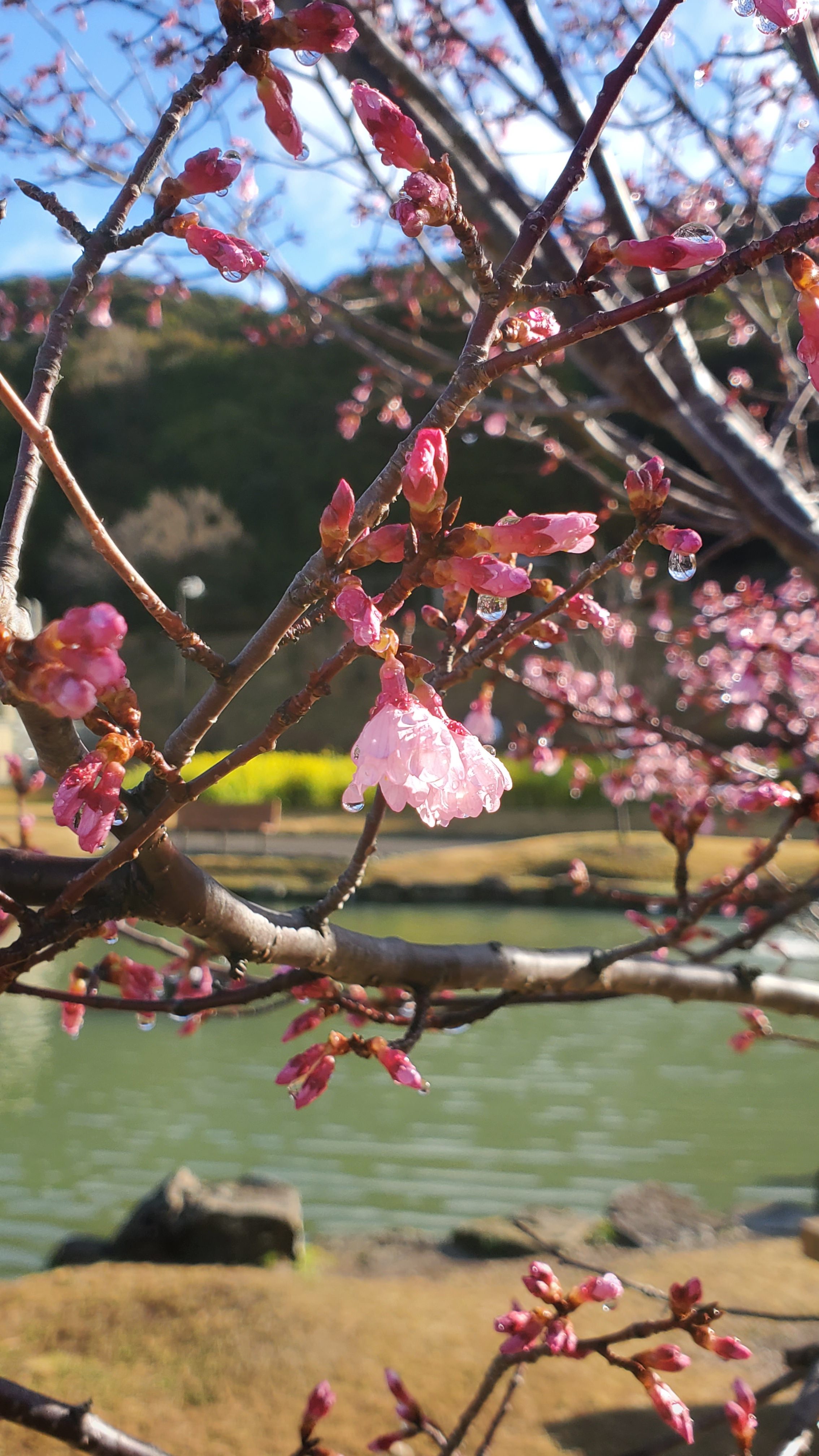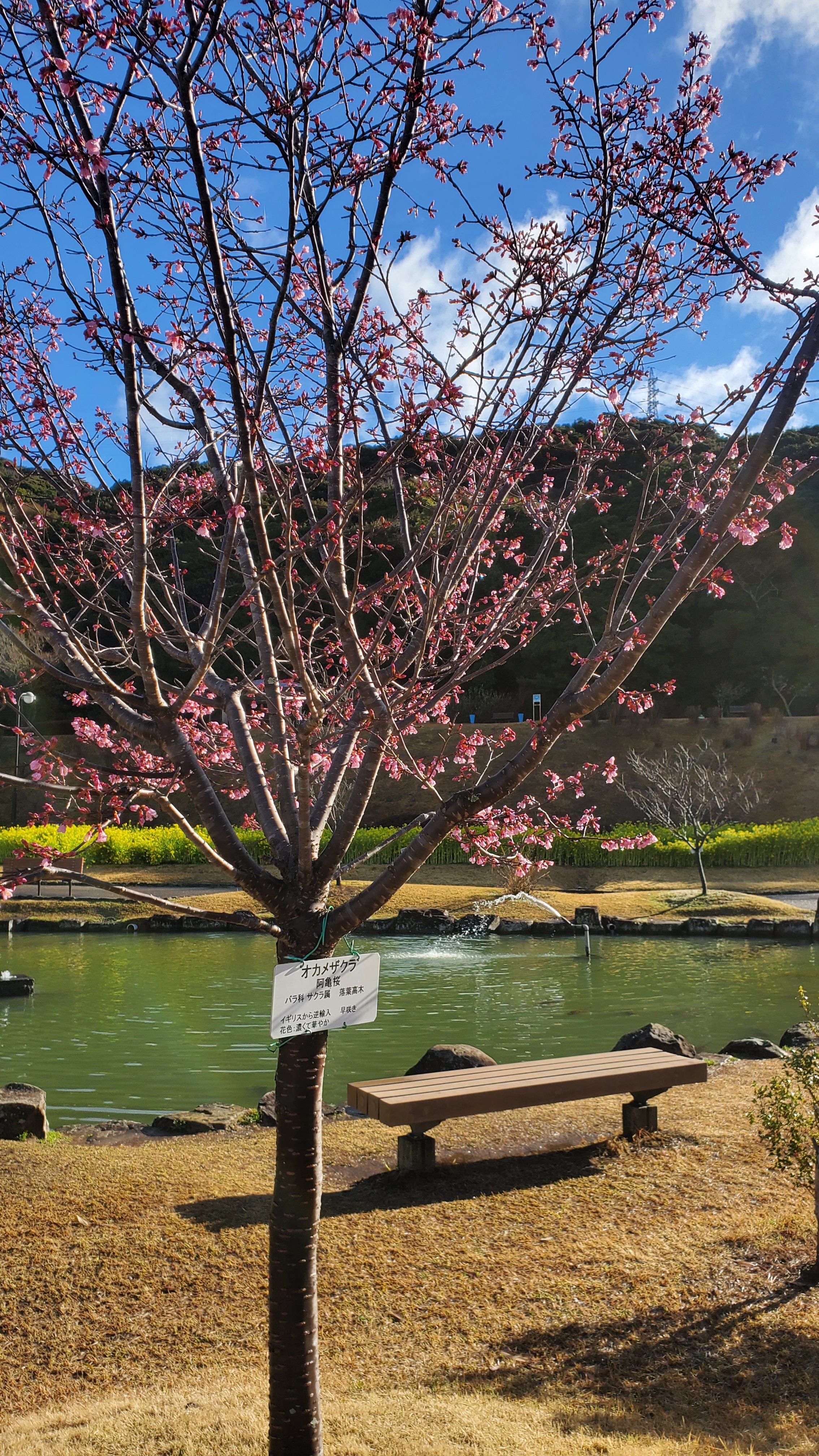 池の近くにある「オカメザクラ」です